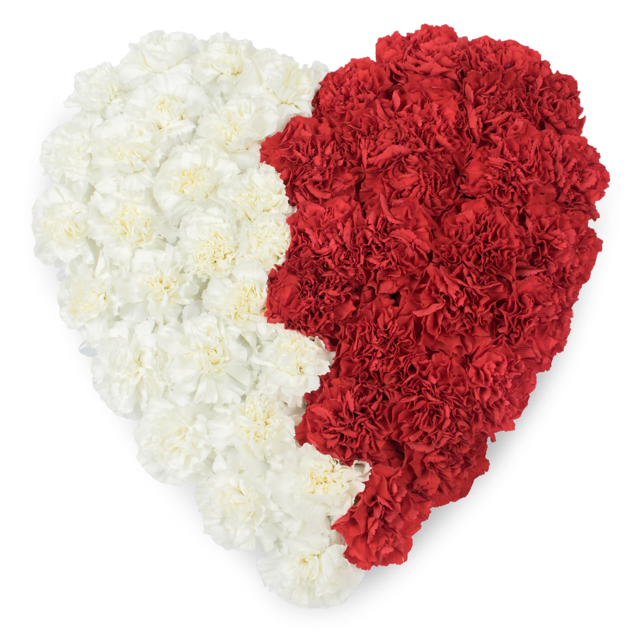 Indulge in the sumptuous allure of our Carnation Heart Bouquet. Featuring an artful arrangement of fresh white and red carnations, each stem is carefully chosen for its natural beauty and vibrant freshness. The heart-shaped design speaks to a deep sense of caring and sophistication, perfect for elevating every special moment.